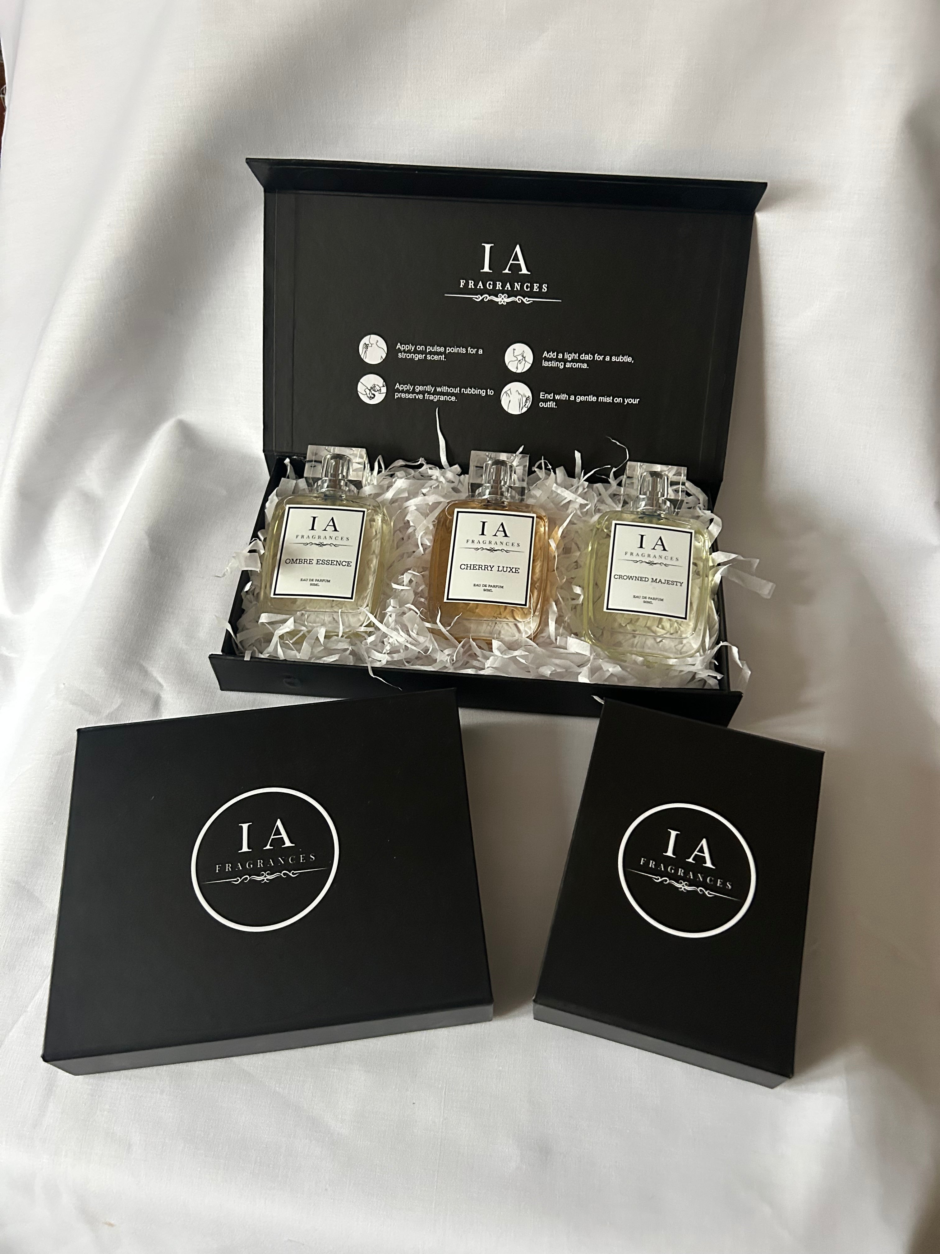 At IA Fragrances, we create captivating perfumes designed to inspire and enchant. Each scent is crafted to evoke emotion, elevate your presence, and leave a lasting impression. Discover timeless elegance — bottled for you.